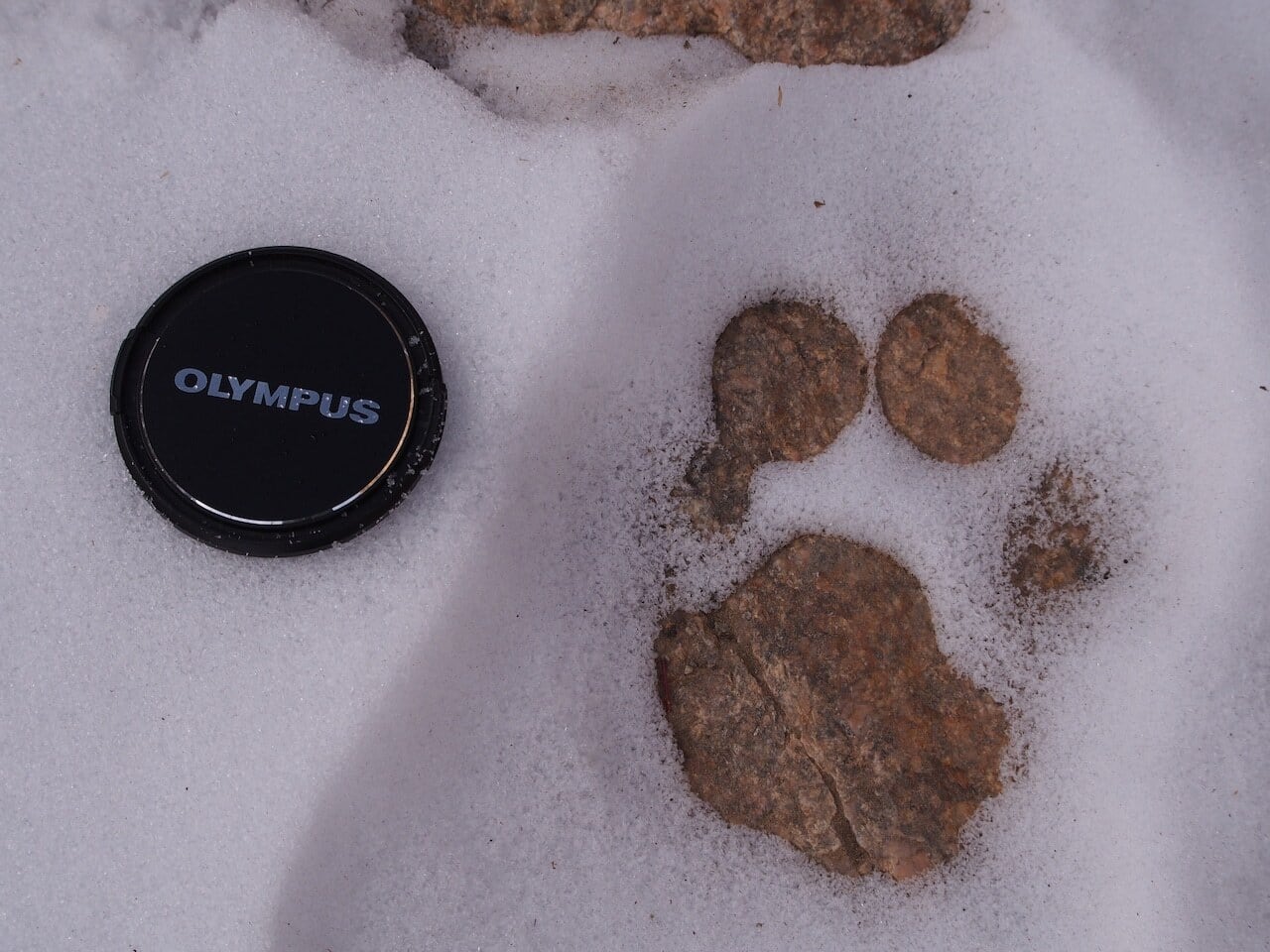 ユキヒョウは前足をついた場所に後ろ足をついて歩くため、
