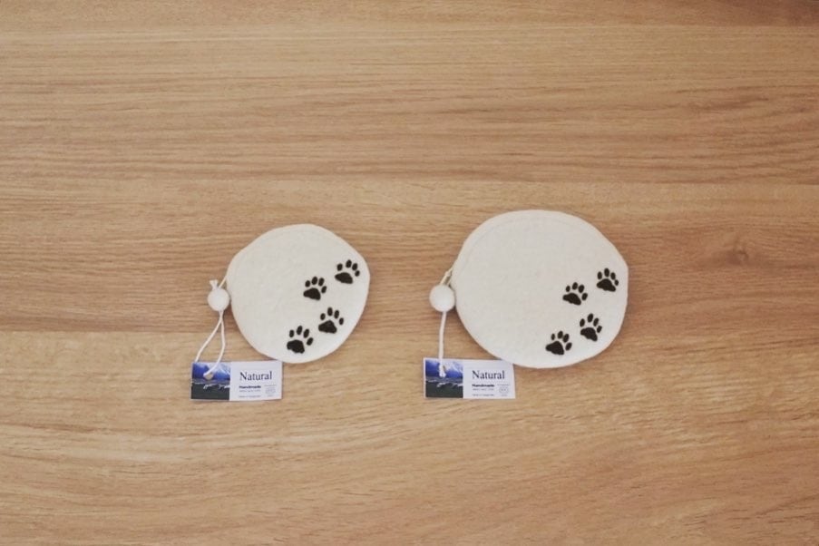 キルギスの女性たちが、ひと針ひと針手作業で制作しいる羊毛グッズ。